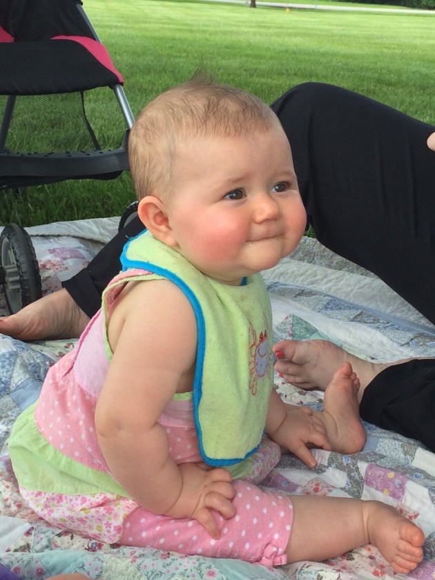 Sitting in Evelyn’s room tonight and rocking her to sleep, I had some time to just think. This week has been emotionally draining for me because our family has reached the end of an era. The Ballard five will never be the Ballard six. It was made final on Wednesday and I know that I am holding my last baby. While this is definitely the right choice for our family, it makes me sad to know that I will never feel those little kicks from the inside again, that the next time I hold a newborn it won’t be mine, and that as we celebrate Evelyn’s ‘firsts’, we’ll also be saying goodbye to her ‘lasts’. Just this week she has started to draw her legs up in an attempt to crawl, and I have also bagged up the last newborn and 0-3 month clothes to leave our house forever. It’s bittersweet.